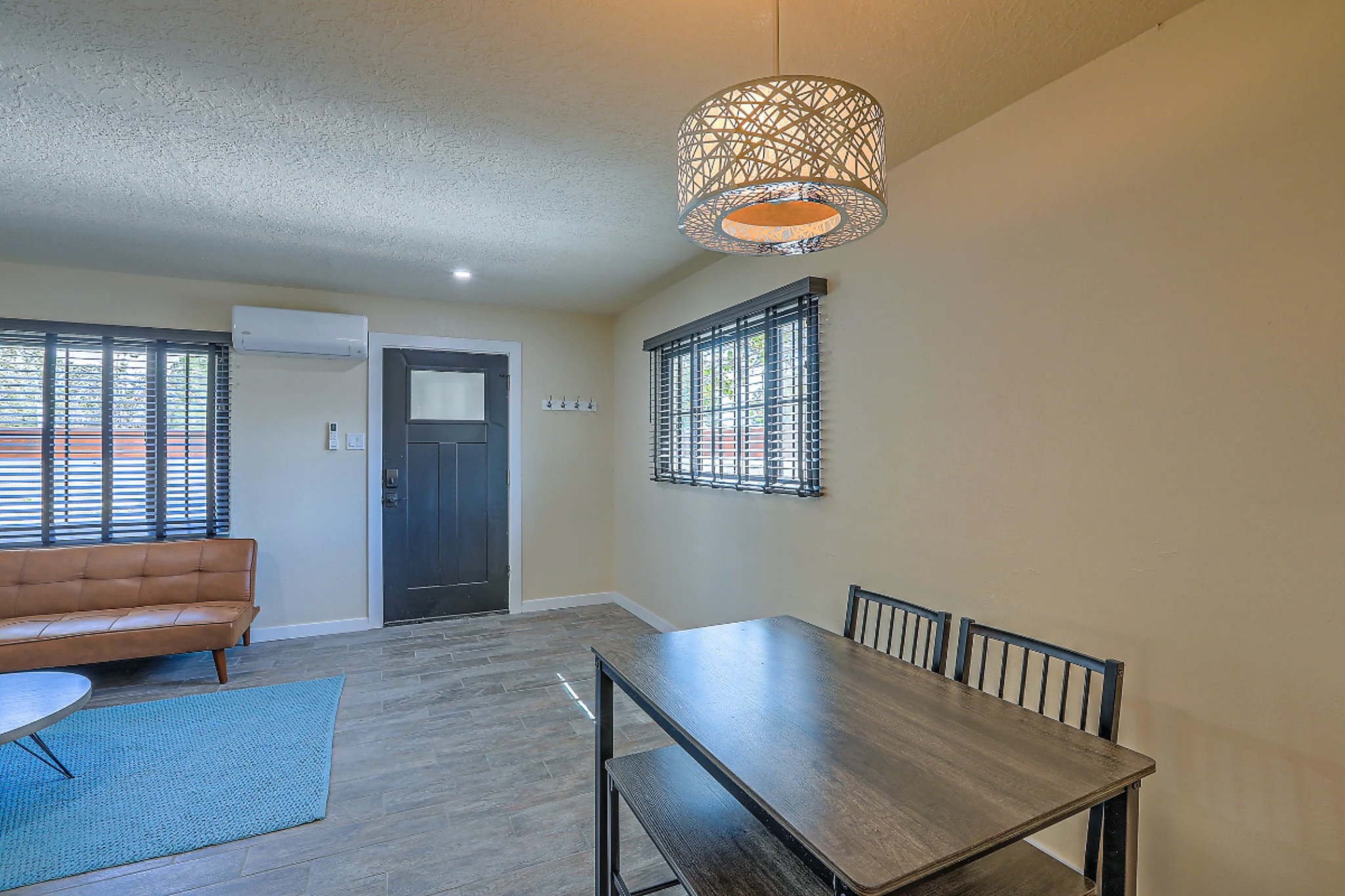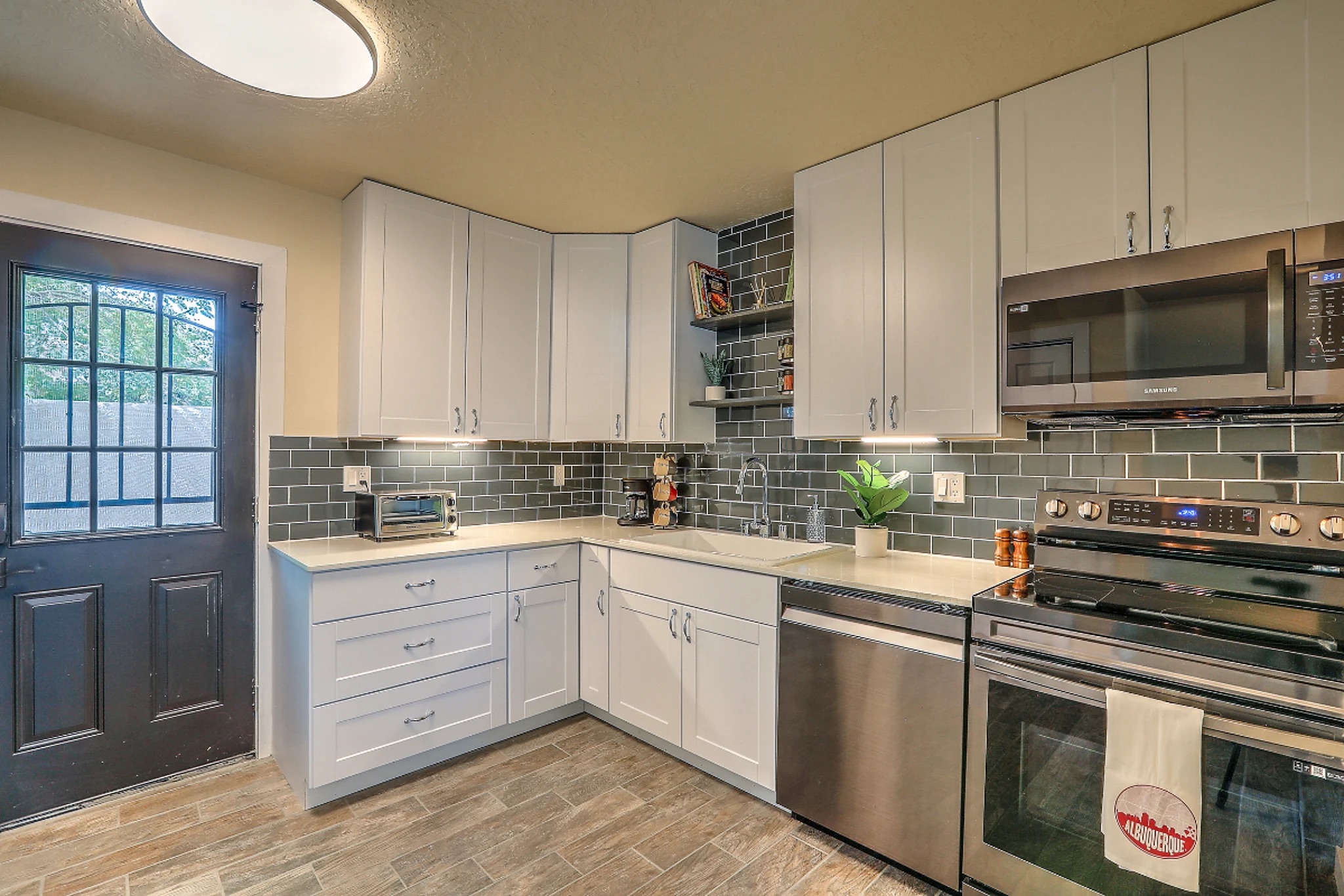 Fully updated unit with all the amenities you need. This contemporary pueblo designs offers privacy and comfort, thoughtful contemporary take on a classic New Mexican Pueblo style design with its own unique New Mexican theme. In unit washer/dryer, kitchen with full size appliances, private one car garage with an automatic opener. Two bedrooms with queen size beds and all the linens. Utilities included, WiFi, ductless mini-split for heating and cooling and much more!